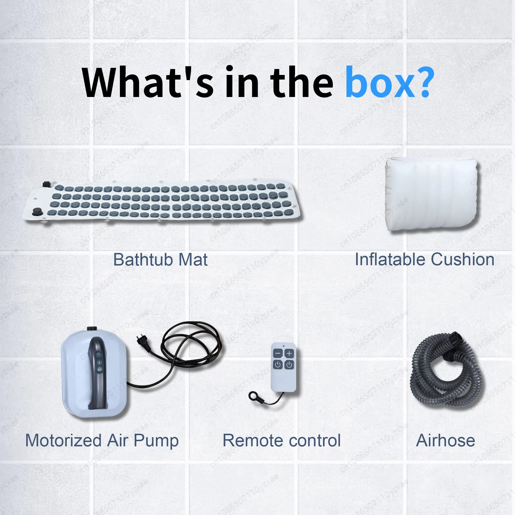 Experience ultimate relaxation at home with full-body massage mat. Designed to fit standard bathtubs, it combines gentle bubbles and massage functions to relieve muscle tension, improve circulation, and create a spa experience in the comfort of your own bathroom.